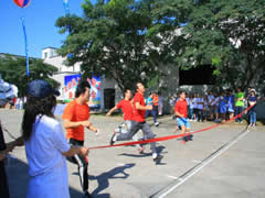 As arranged by the company’s Vice President and Chairman of Labor Union, Mr. Cui Hongwu, after the careful preparation of all union staff, the organization of sports meet went on in good order. According to specific departments, the whole company was divided into Forming Sector 1, Forming Sector 2, Forming Sector 3, Assembly, External Packaging, Metal Molds and General Department composed of Quality and General Affairs. There were a total of seven teams. Accordingly, they were divided into seven squads, in pink, white, red, yellow, green, orange and blue garments respectively. They were arrayed in the grandstand neatly and orderly. Referees and staff were dressed in navy blue, stood by and bustled around the site. The first item of the meet was an entrance ceremony of representatives on behalf of all athlete teams. They dressed neatly, walked in step and their dashing manner was full of vigor, demonstrating the charm of sports. The second item was addresses of the company and Labor Union leaders. After that, beautiful girls from Mogamiseiki performed calisthenics before the meet. The dynamic melody and unrestrained dance soon infected everyone present. The atmosphere was warmed up immediately.